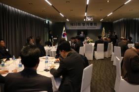 - 1. 일 시 : 2017. 2. 16(목) 10:30 2. 장 소 : 글래드호텔 2층 Project Room A 3. 참석인원 : 총 재적 대의원 38명 중 본인참석 23명, 대리참석 5명, 서면결의 8명 도합 명 36명 참석. 4. 심의안건 및 결과 제1호 의안 : 2016년도 사업보고, 결산 및 잉여금처분(안) - 원안대로 의결하다. 제2호 의안 : 2017년도 사업계획 및 수지예산(안) - 원안대로 의결하다. 제3호 의안 : 2017년도 차입금 한도액 설정(안) - 원안대로 의결하다. 제4호 의안 : 총회 의결사항 중 일부에 대한 이사회 위임(안) - 원안대로 의결하다. 제5호 의안 : 감사선출의 건 - 현 감사인 (주)성실엔지니어링 대표이사 엄무열과 건일스틸(주) 대표이사 홍걸을 선출하다.